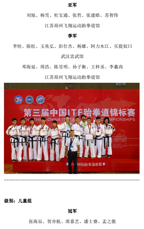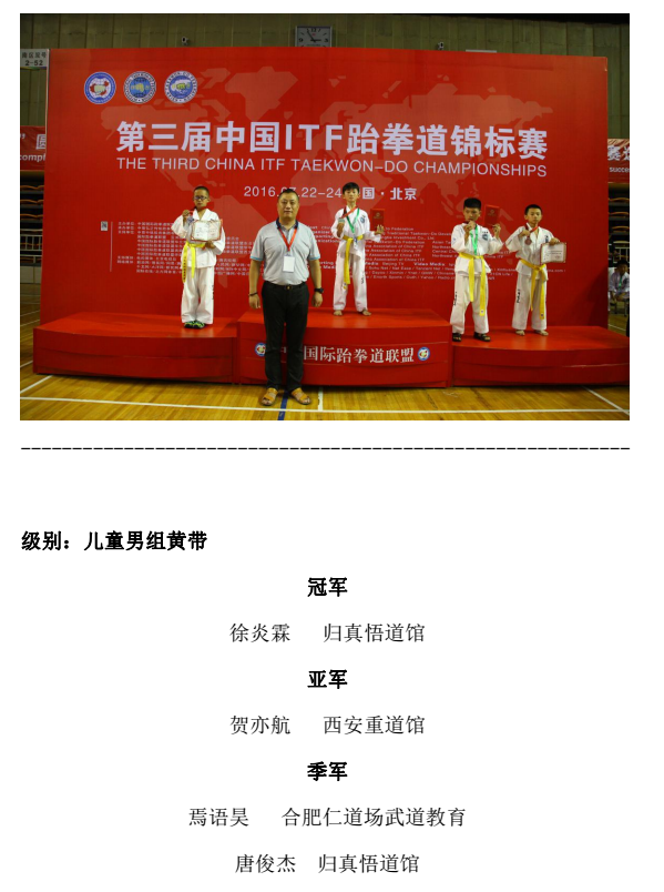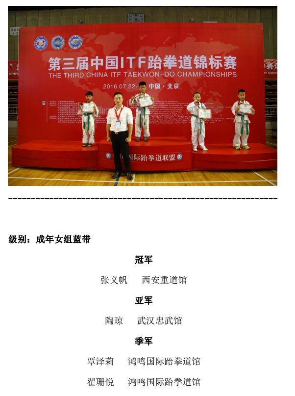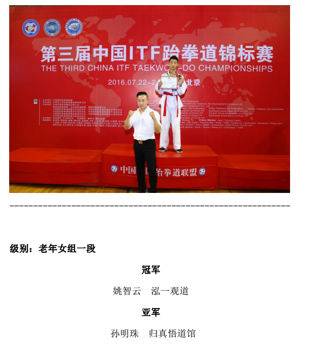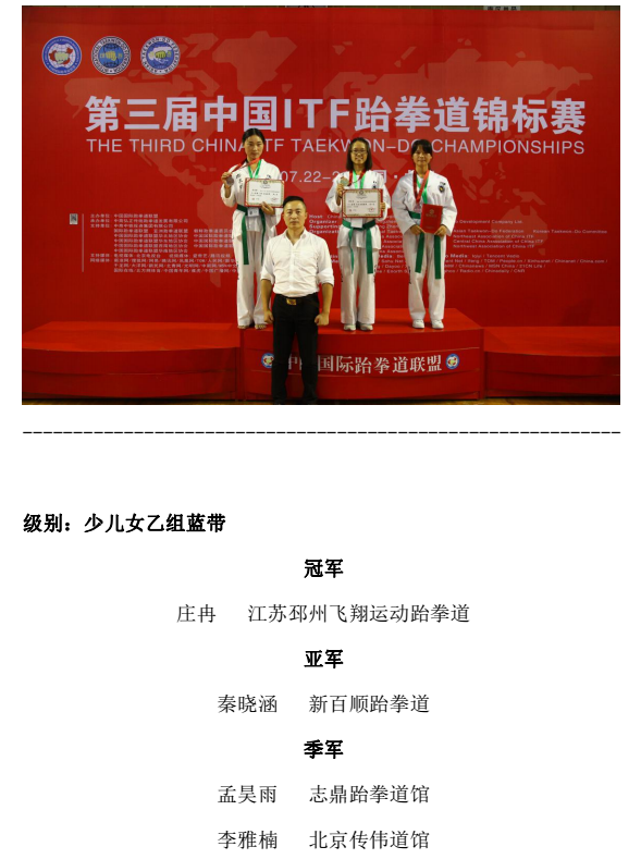 第三届中国ITF跆拳道锦标赛套路成绩公布及颁奖照片
